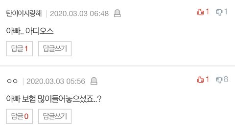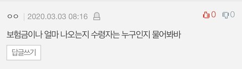 이런 댓글 쓸려면 애초에 쓰지마 진짜 너넨 내 상황일때 돈부터 따질 애들이야 진짜 이런 댓글 쓰고싶어 ..? 그만 달아줘