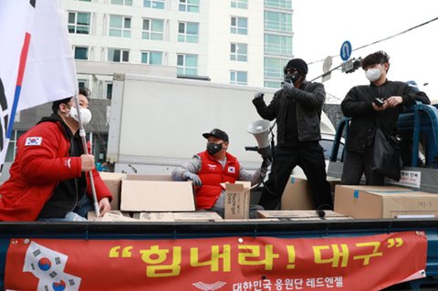 대구 시민들에게 응원의 말을 전하는 모습이 담긴 사진이
