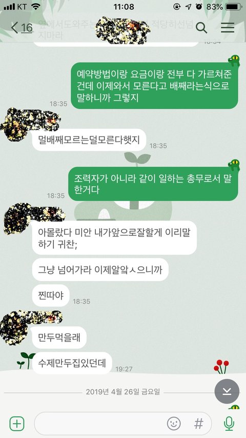 오전에 독서실 총무 알바를 하면서 공부하며 취준 중이었는데, 오후 파트에도 자리가 생기며 남동생을 추천해주었습니다. 이때까지는 사이 좋았구요.