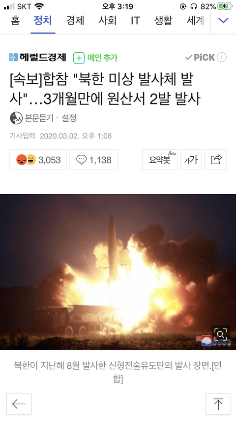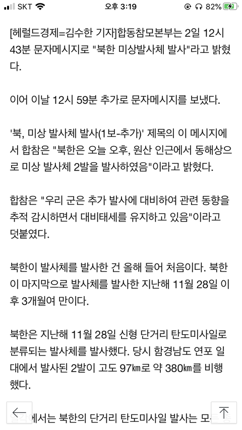 ⚠️북한이 미사일 발사했어⚠️