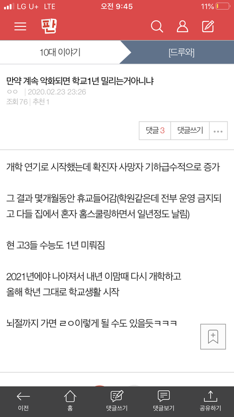 댓글 많은 톡