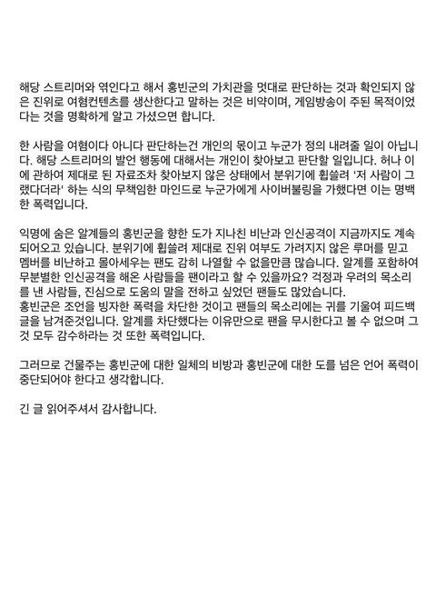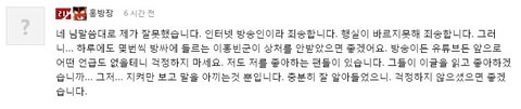 사과문 올리고 방송 진행할것 같았는데 악플이 심해서 결국은 홍방장님하고 게임 같이 안함.