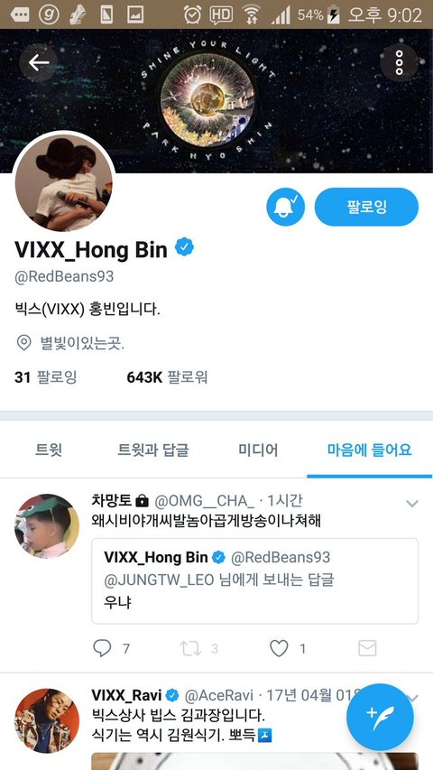 트위터에서 5인지지 한다고 대놓고 빅스 탈퇴하라고 꾸준히 악플 달았음.