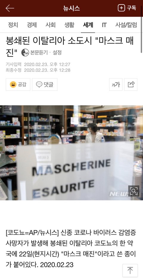 이탈리아는 참고로 유럽에서 유일하게 코로나가