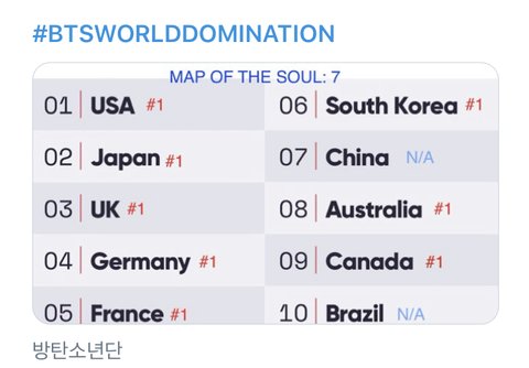 참고로 지금까지 톱5 국가에서 1위한 역대 앨범은