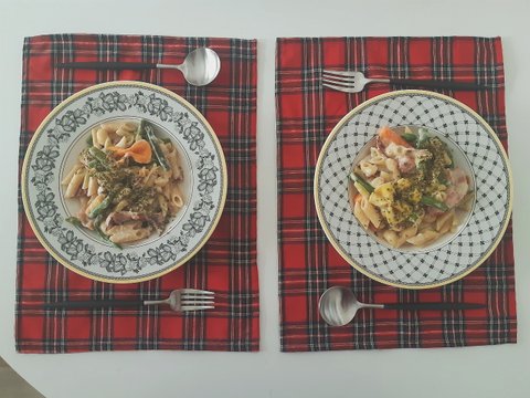 면은 통밀파스타라 색깔이 누렁누렁하고 일반면보다 더 오래 삶아야해요