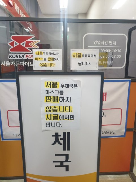 '서울우체국에서는 마스크를 판매하지 않습니다. 시골우체국에서만 판매합니다'