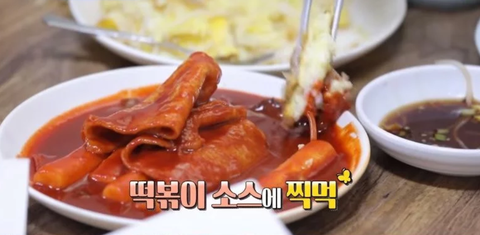 눈 앞에 맛있는 떡볶이와 계란 만두를 보고,