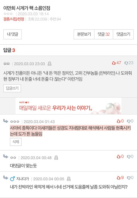 저 시계에 야당이던 여당이던 정치색 입혀서 의미부여하는 순간부터 사이비교주한테 놀아나고 있는거임 ㅋ