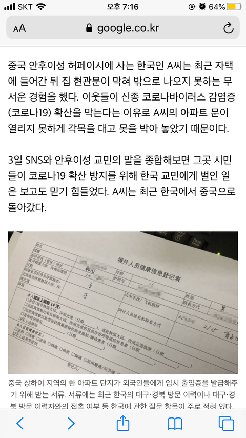 한국인이 중국에서 당하고 있는 수모