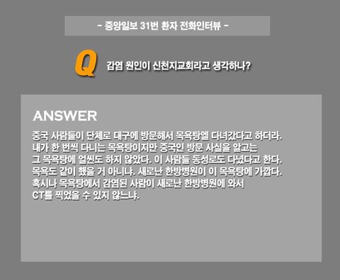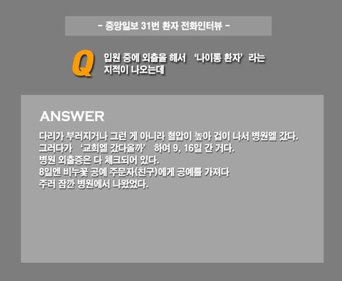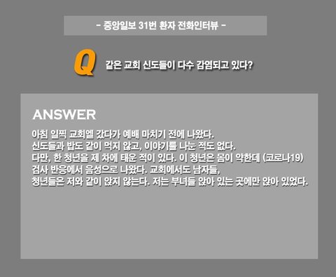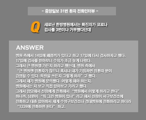 <중앙일보 > 31번 확진자 인터뷰 내용입니다