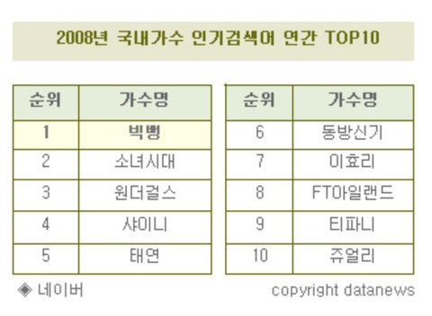 2위 2NE1(남성부문 연간 6위, 여성부문 연간 8위)