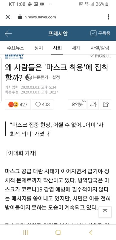 정부 니들이 꼭 쓰라메!!마스크없으니 쓰지말라고?