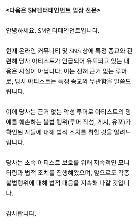 SM 고소 공지 올라옴