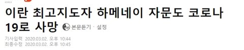 나 진짜 저건 중국이 국가적 차원에서 무조건 이란 책임지고 도와야한다고 본다; 이탈리아랑 이란에 지원만하고 끝날게 아니라 우리나라랑 이탈리아는 재정적으로 지원하고 고위간부급 난리난 이란은 지들나라처럼 책임져야 맞다고봄 조카 민폐 쓰레기국가 중국