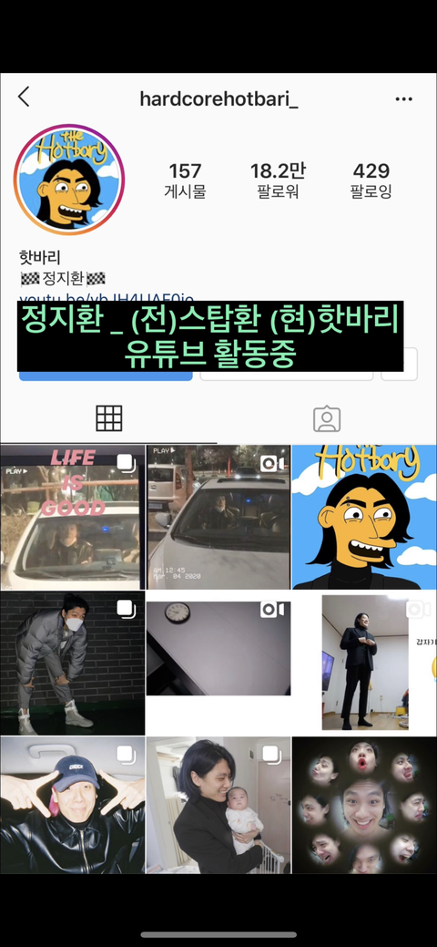 정지환은 선xx랑 결별 하고 나서 스탑환에서 핫바리로 유튜브 개명하고 유튜브 컨텐츠가 바뀜...