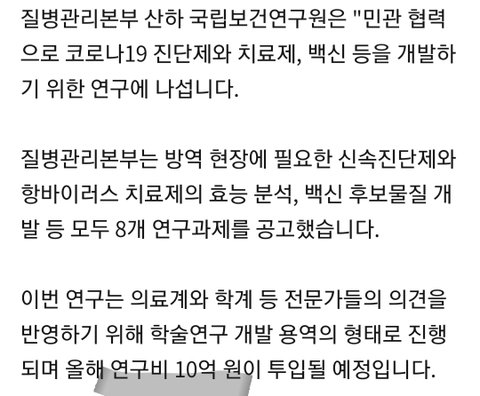 ㅡ 코로나 치료제 연구비 ㅡ
