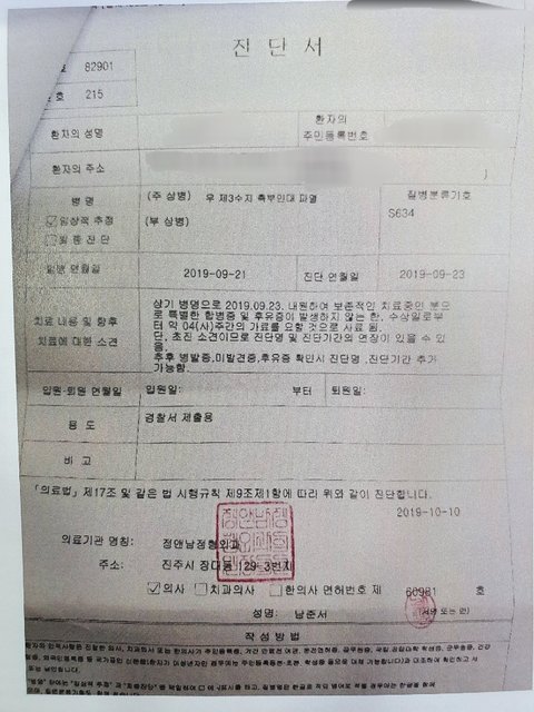 이에 놀라서 저랑 저희일행(친동생과 친구들)이 뭐하는 짓이냐며 전남편을 친정엄마에게서 떨어뜨리려 했고, 그러는 중에 A가 뛰어와서는 말리는 척을 하다가 저희어머니 손가락 잡고 비틀었습니다.