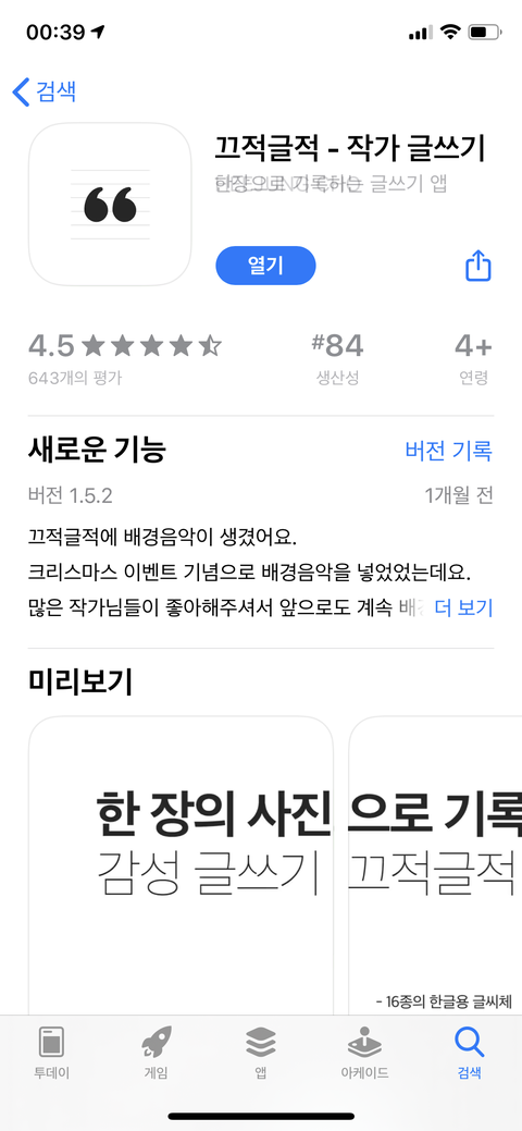 끄적끄적 이라는 어플이야 bgm도 자체적으로