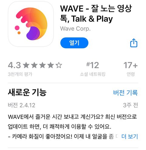 시간도 잘 가... 밑에 웨이브 어플은 코로나 때문에 못 만나는 친구 나 애인 이랑 같이 전화나 메세지 주고 받으며 게임도 하고 웹툰도 보고 유튜브 도 볼수 있어! 단점은 배터리가 빨리 달고 폰이 뜨거워져 ㅠ