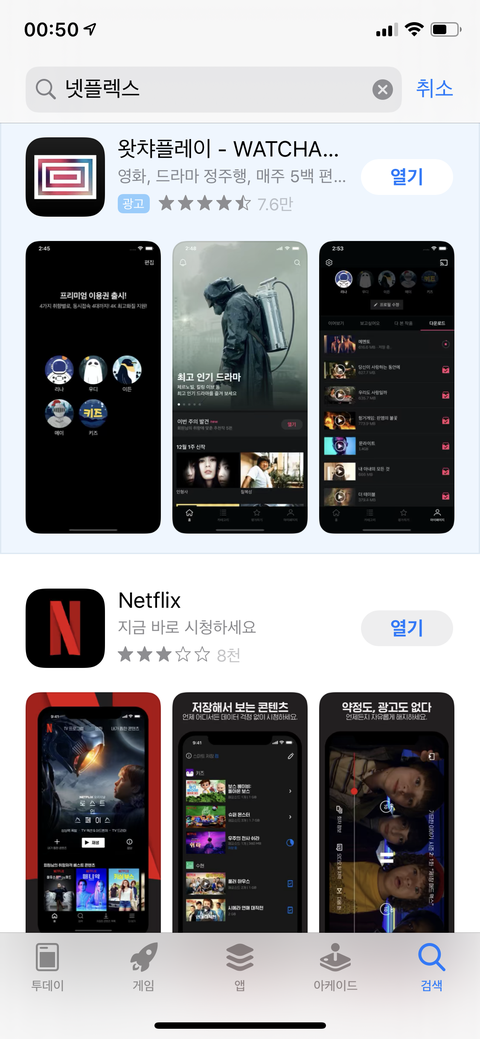 두번째는 왓챠 랑 넷플릭스