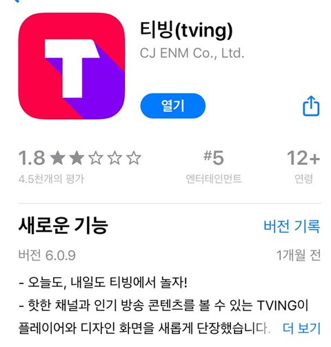 마지막으론 티빙! 티빙 어플은