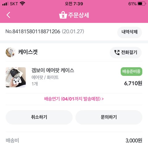 하ㅋㅋㅋ에어팟케이스 1월말에 시켰는데