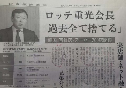 [펀글] 롯데 신동빈 "한국 내 백화점·슈퍼 등 200점포 연내 폐쇄" - 연합뉴스 (2020. 03. 05)