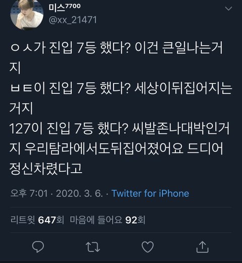 7위라니 내가 입덕하고