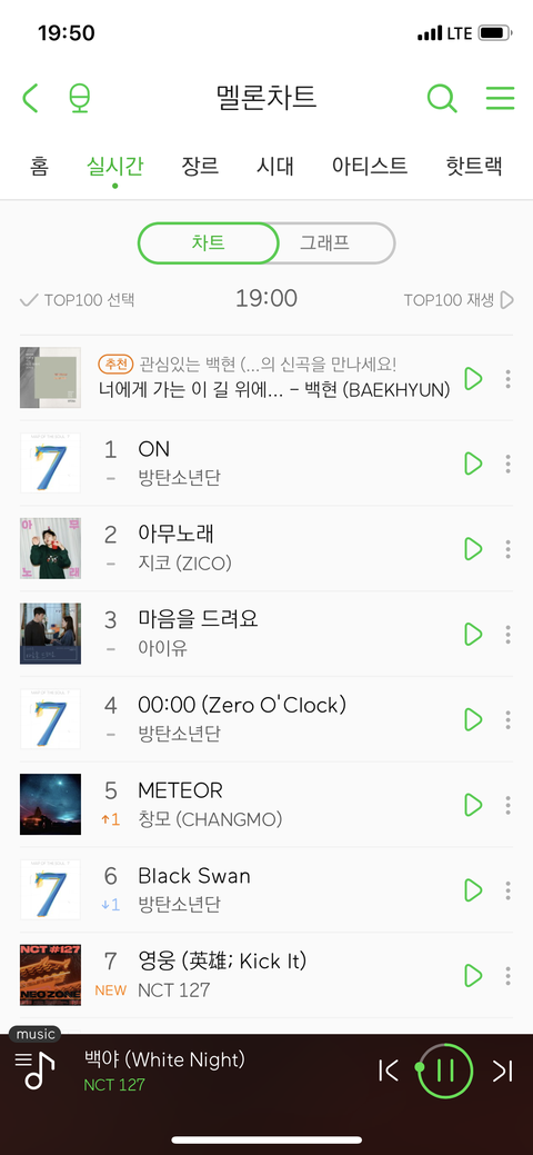 지금 영웅 7위인거... 심지어 음원나온지 1시간후의 결과? 맞나???