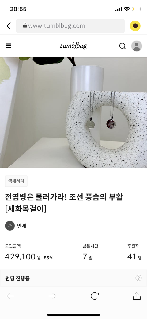 나는 이번 방학 때 계속 이불 속에만 있기 싫어서 텀블벅 프로젝트 진행했는데 요즘 코로나 바이러스로 문제 심하잖아 그리고 취업도 미뤄지고.