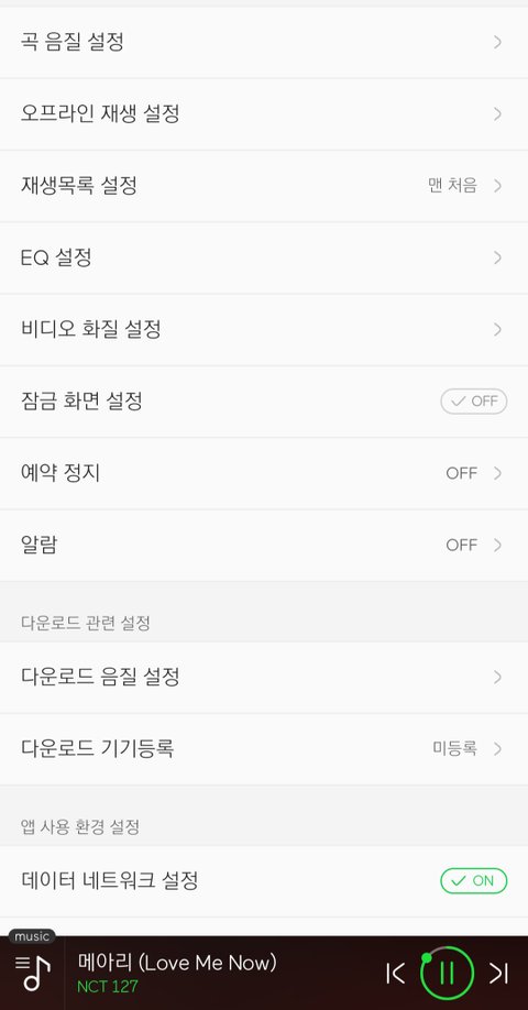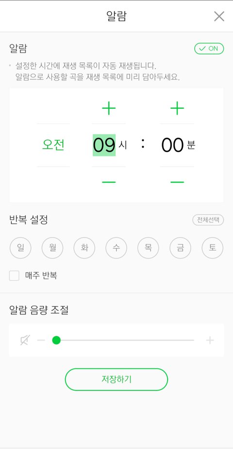 여기 초록뮤직 설정 들어가면 예약 정지 있거든??? 그걸로 시간 맞춰두고 바로 이어서 알람 설정해 놓으면 바로 다시 스밍 돌릴 수 있어!!