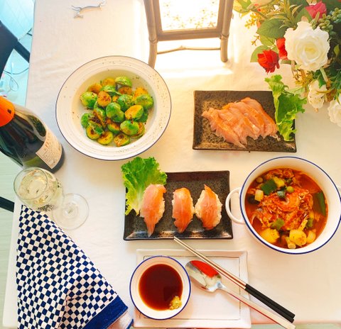 그래도 조명빛을 받아 찬란하게 빛나는 너를 그냥 지나 칠 수없어... 업어왔다.어찌어찌해서 살가죽 냉큼 벗겨꽁꽁 뭉친 초밥살살 녹는 회 몇개국간장으로 맛을 낸 매운탕을 해봤다.방울 양배추 버터구이 세척한 방울 양배추를 반으로 갈라방울 양배추는 전자렌지에서 반 정도 익혀주고버터를 녹인 팬에 마늘 다진것과 방울 양배추를 볶아준다.