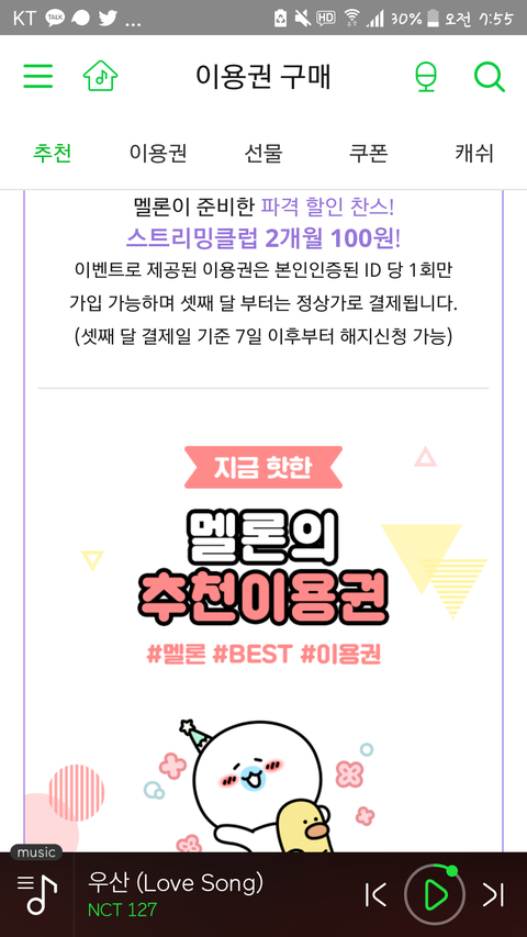 이거 2달동안은 100원이고 3째달되는 날에 7900내고 이용권 환불할수 있는거니