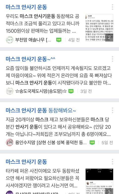 맘카페 중심으로 마스크안사기 운동을 하고있더라고요.