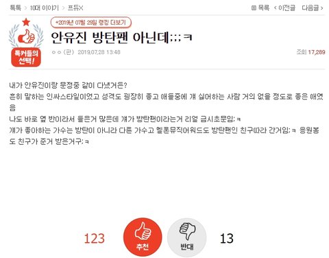 안유진 친구가 방탄팬 아니라고 글 올렸었네.JPG