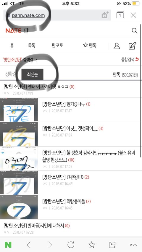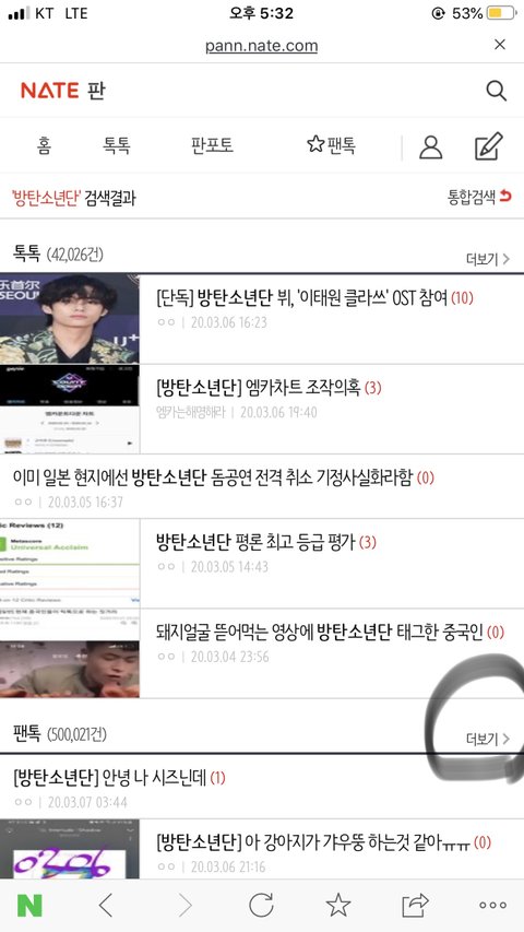방탄소년단 검색해서 팬톡 더보기로가면 우리 팬톡글만 쫙나오자나