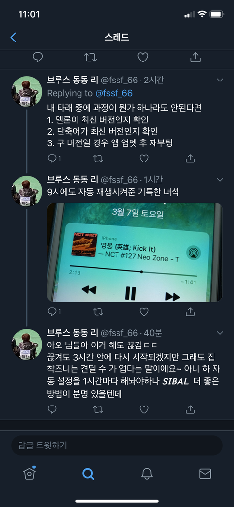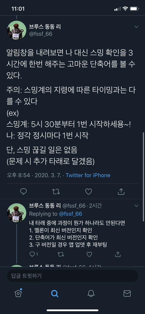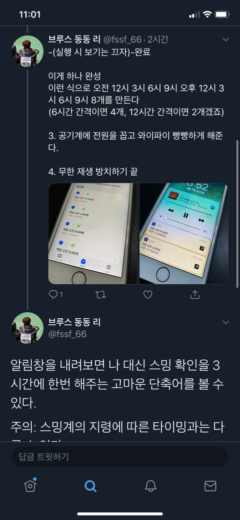 근데 이것도 끊기긴 한대 그니까 새벽에 한 번은 일어나야 할 것 같아 틋터에서 찾았는데 문제되는 거 있음 바로 지울게 순서대로야