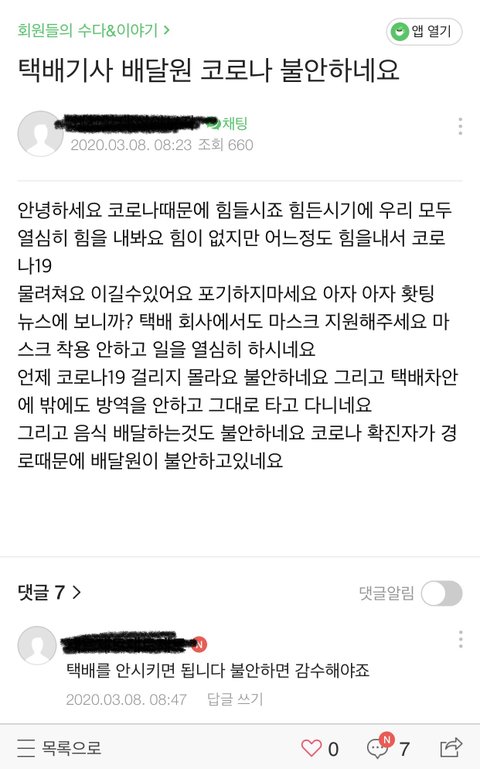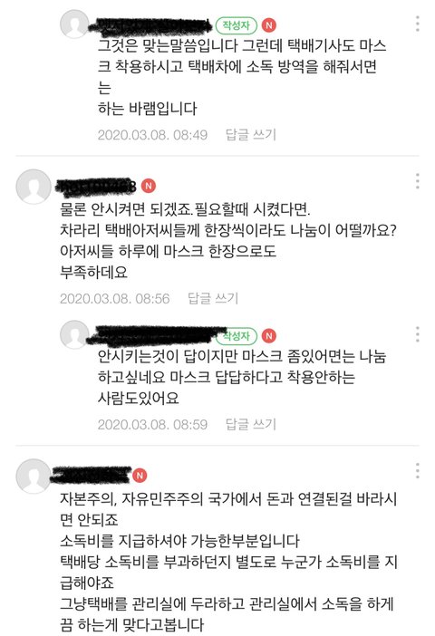 택배기사 배달원 코로나 불안하네요