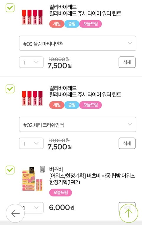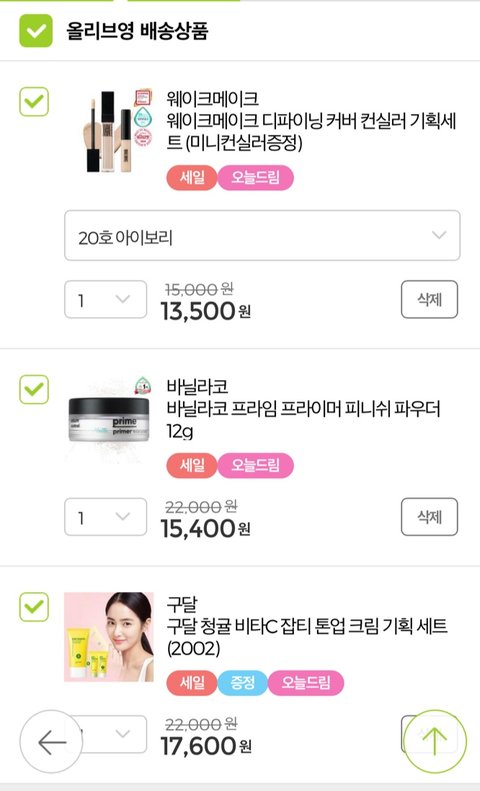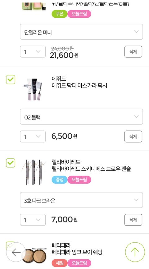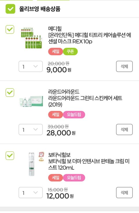 추천 받은거 이것저것 장바구니에 넣어봤어! 올로드샵 인데
