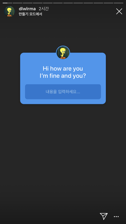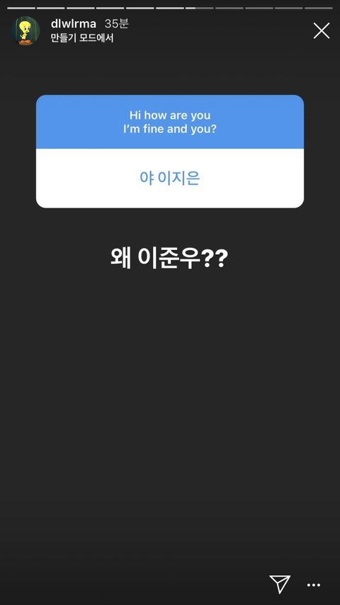 아이유가 인스타 스토리에 질문을 올림.