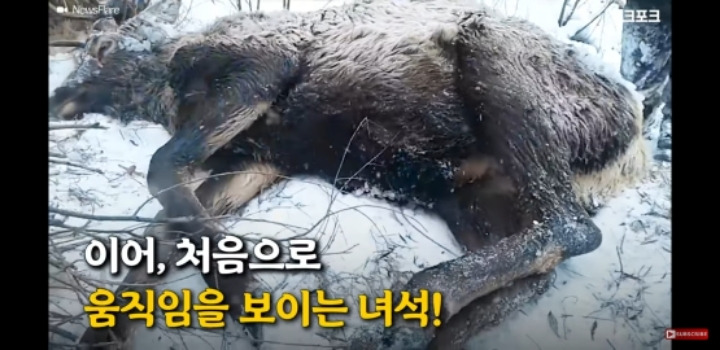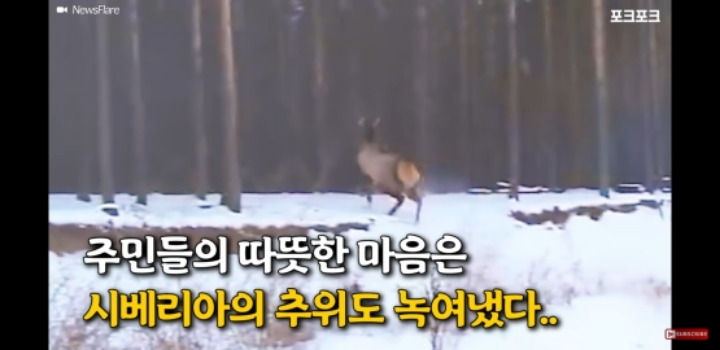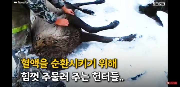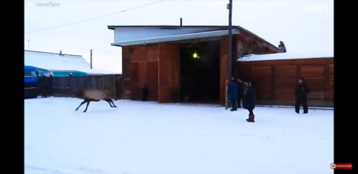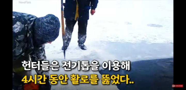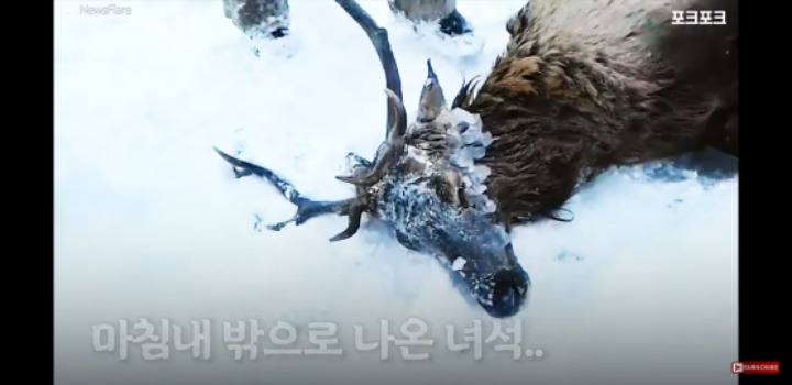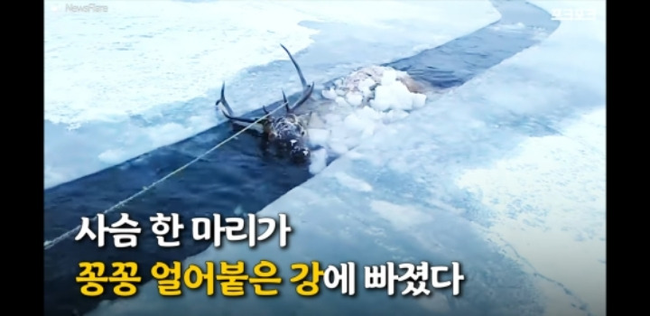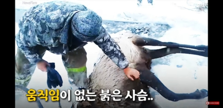 얼음물에 빠진 사슴을 구해주는 러시아헌터