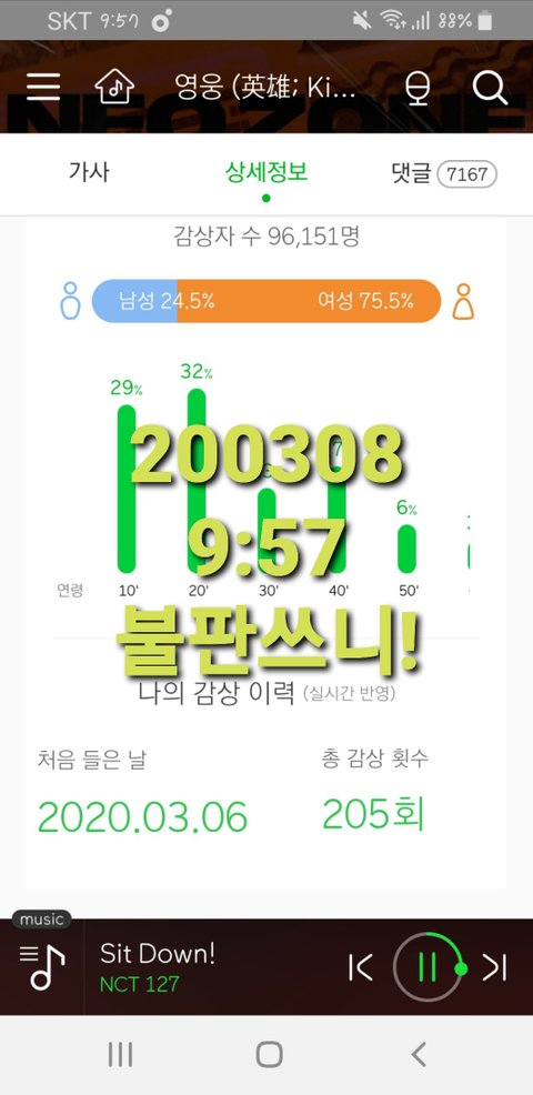 10시맞춰 올리려고 스밍횟수 미리 캡쳐했어!! 양해부탁해ㅠㅠㅠ