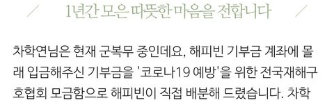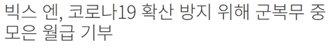 “엔이 1년 동안 모은 군인 월급 420만원을 기부했다”