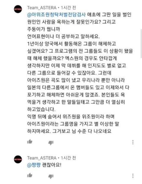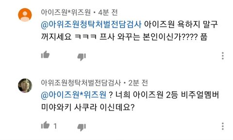 얘들아 댓에 위즈원 몰려왔으니까 알아서 필터링하고 봐! 동일인물 아니라고 인증까지 해놨는데ㅋㅋㅋ 예전사진 들고와서 논란 부추기네 그냥 그렇게 위조하며 살어!