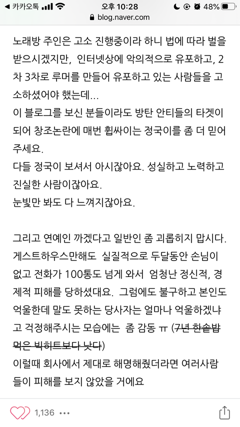 이사실을 알고있거나 이제 아신 아미 분들도 관련있는 일반인분들에게 개인적으로 sns를 통해 연락해서 비난하고 욕하고 그런행동은 하지 않으셨으면 좋겠습니다 저가게만해도 엄청 피해를 봤는데 그분은 오죽하실까요 ? 정국이도 지인들에게 엄청 미안해 할겁니다 더이상 피해주지 않으셨으면 좋겠어요! 아미여러분들을 믿습니다