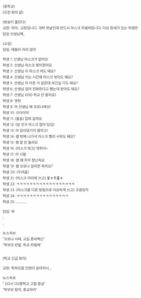 개학일에 학교에서 벌어질상황이래 ㅋㅋㅋㅋㅋㅋㅋㅋㅋㅋ
