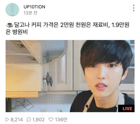 브이앱 제목도 '달고나커피 가격은 2만원 천원은 재료비 1.9만원은 병원비'ㅋㅋㅋㅋㅋ