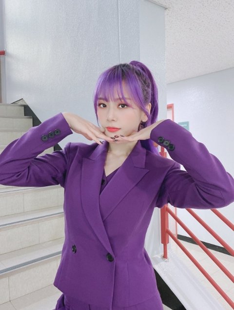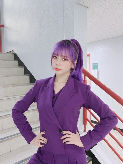 저번 음방에서 보라색 머리 + 보라색 수트 입는 바람에
