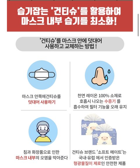 몇일전 맘카페에서 우연히 건티슈를 활용한 마스크 재사용방법을 공유해 드려요.